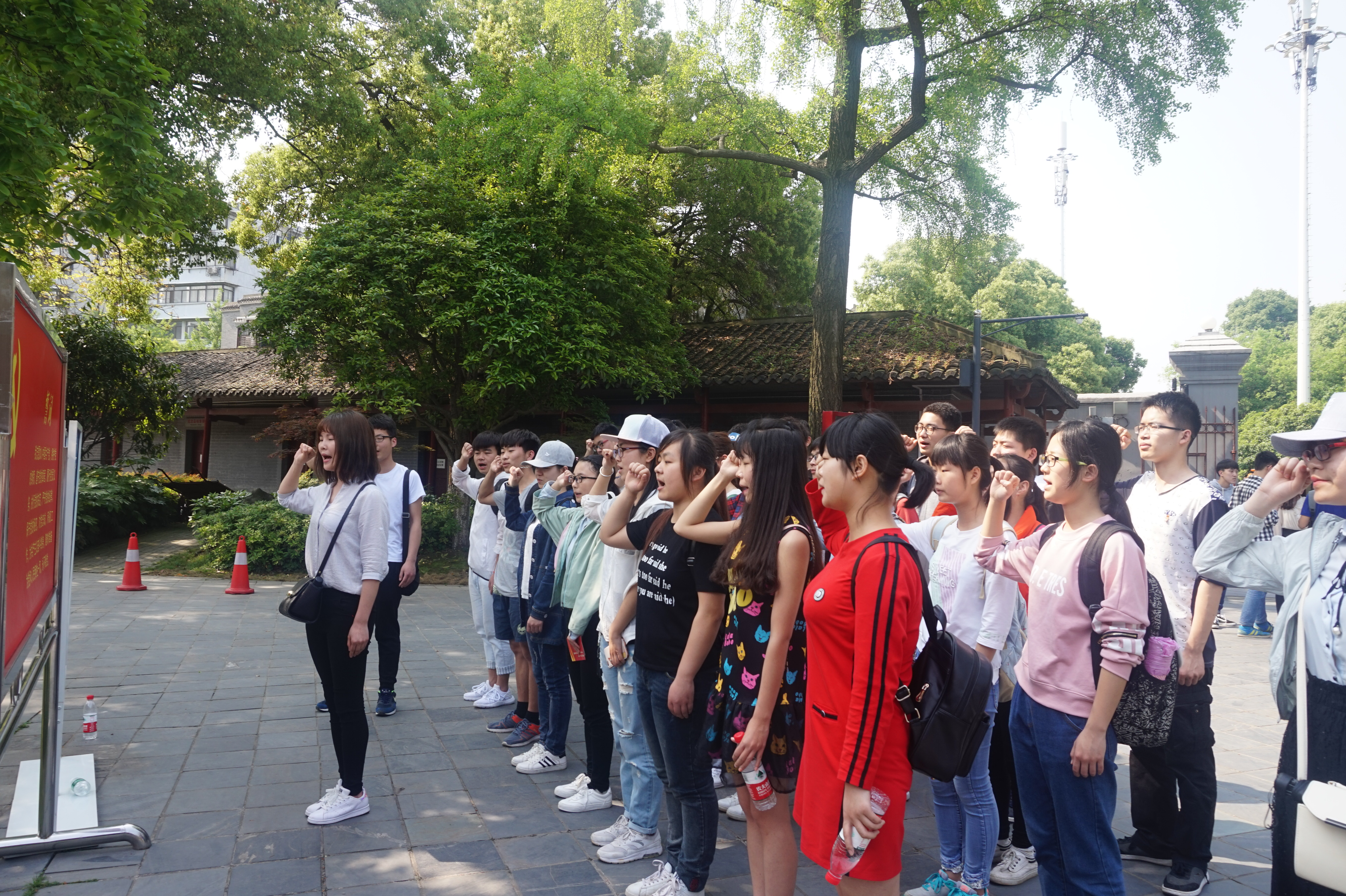 出发前,35名入党积极分子在太阳成集团tyc7111cc正门口进行了合影留念。预备党员余甜、王松和李培玲为此次参观做了详细安排,签到后,他们组织入党积极分子们乘坐539公交车到达了武昌农民运动讲习所旧址纪念馆。在纪念馆门口,李培玲带领35名入党积极分子重温入党誓词,三十多人洪亮整齐的声音顿时吸引了周围游客的目光,不少游客都驻足观看学员们的宣誓。