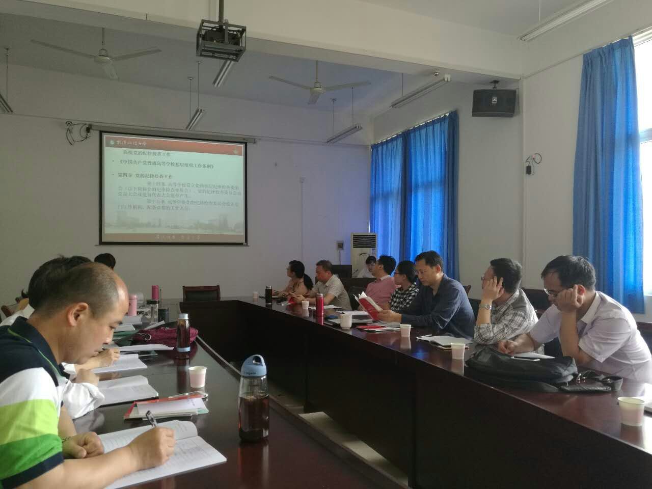 学院纪委书记姜曙嫚首先向参会委员重点讲解了纪律检查委员会的基本职责、党内监督的主要内容和任务、开展监督执纪问责的方法。同时,她带领大家学习了《中国共产党普通高等学校基层组织工作条例》、《中国共产党党内监督条例》、《中国共产党纪律检查机关监督执纪工作规则(试行)》、《中国共产党问责条例》等文件的相关内容。